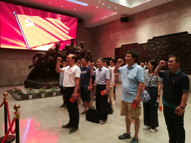 党委组织全体在职和退休教工支部党员,开展“我的初心使命”系列主题党日活动,重温党史、唤醒从“石库门走向天安门”的红色基因,传承红色基因。 院党委组织全体教工党员观看了钟杨同志事迹纪录短片《播种未来》和复旦大学钟杨同志先进事迹报告会的视频,进一步深入学习钟杨精神,将学习与日常党建工作紧密联系,努力做“钟杨精神”的践行者。党员们表示,作为高校教师要学习钟杨同志坚定的理想信念和崇高的人格情操,弘扬种子精神,不忘初心、牢记使命,潜心育人、献身科研、筑梦教育。 在集中观看爱国主义教育影片《红海行动》的活动中,党员们无不为贯穿影片始终的爱国情怀、民族精神,以及中国军人尽忠职守、舍己为人、不抛弃不放弃的精神意志所感染和震撼,影片中的口号“勇者无畏,强者无敌”极大地鼓舞了党员们在工作中的团队意识和拼搏精神,鼓励党员们不忘初心,继续前行。 在开展赴中共四大纪念馆学习教育活动中,通过纪念馆中的文字、照片、绘画、浮雕等,党员们生动领略了共产党创建初期的峥嵘历程,包括中共四大召开的时代背景、主要成果和历史贡献,尤其是“四大”在党的历史上第一次明确提出无产阶级领导权和工农联盟问题,提出加强党的组织建设,执行党的群众路线,将党的基层组织由“组”改为“支部”,规定“凡有党员三人以上均得成立一支部”,为中国共产党由一个宣传马克思主义的政治小团体转变发展为“真正的群众性政党”作出重要贡献。面对党旗,在院党委书记楼立志的领誓下,全体教工党员一起重温入党誓词,大家举起右拳,以坚定有力的宣誓声,表达不忘初心、砥砺奋进的信念及决心。