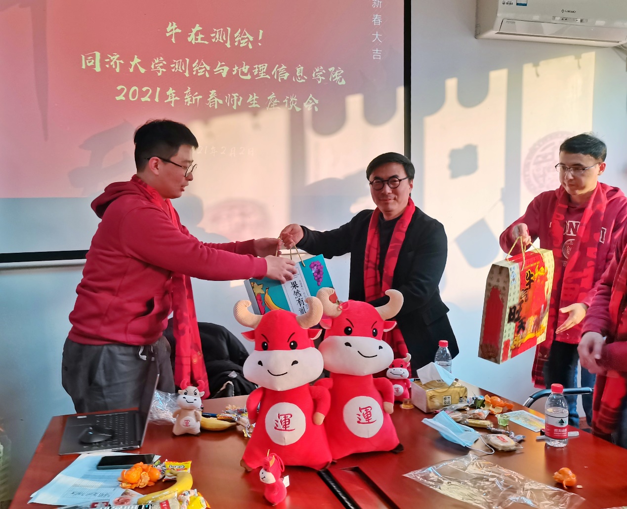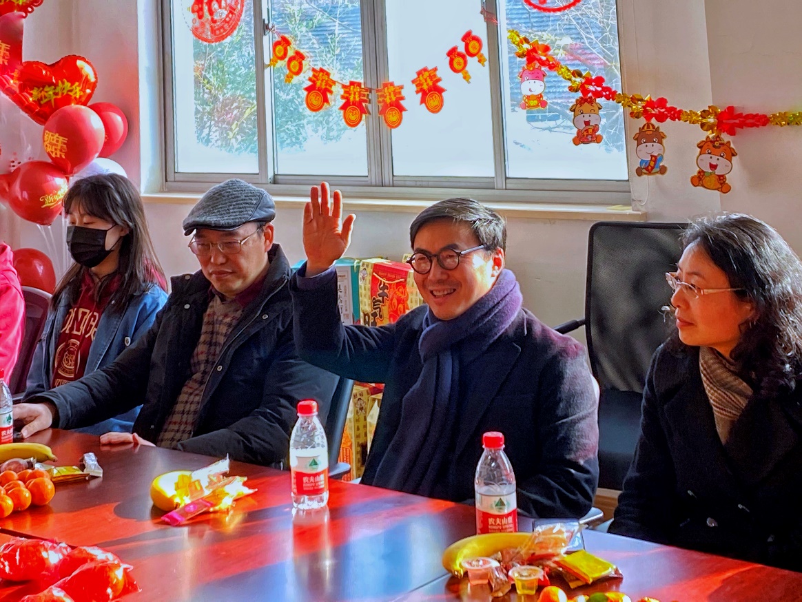 2021年新春慰问座谈会,与身穿“暖心牌”新衣的留校学生欢聚一堂,共话新春希冀。下午三时,座谈会在测绘馆301和401会议室同时举行,由性爱电影