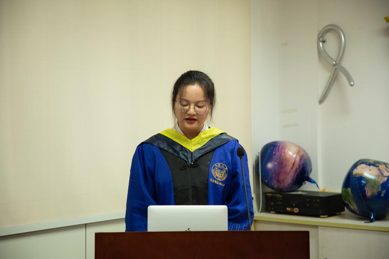 毕业班班主任代表刘世杰老师发言 毕业生代表、2018级硕士研究生韩江萍代表全体毕业生表达了自己的感恩和不舍之情。她向辛勤付出的老师们表达了崇高的敬意和衷心的感谢;向携手同行、风雨共度的同窗挚友送上了美好的祝愿。同时,她号召同济测绘学子在未来的新征程中,要一如既往地践行“同心同德同舟楫,济人济事济天下”的同济精神,书写新的华彩篇章。