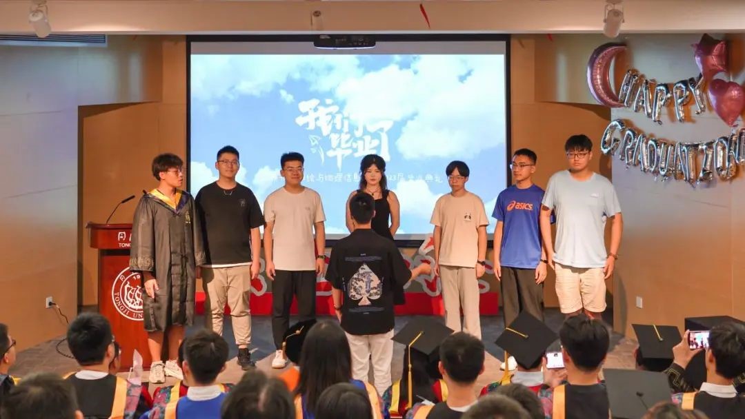 教师代表、院办、学工办、团委、教务员及部分毕业生家长等出席毕业典礼。2023届本科毕业生王虹量和2023届博士毕业生陶天慧主持典礼。