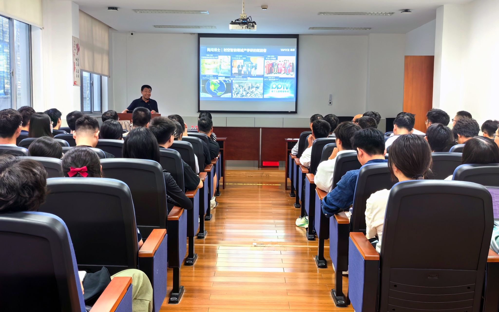 聘任仪式后,陶闯博士以“时空大模型的技术和应用”为题作学术报告。他指出,时空大模型是AI 3.0的核心,推动人工智能从“知识学习”迈向与物理世界的“交互与决策”,通过构建时空格网与知识图谱,实现动态感知、预测与场景化决策,广泛应用于智慧城市、商业选址与低空经济等领域。