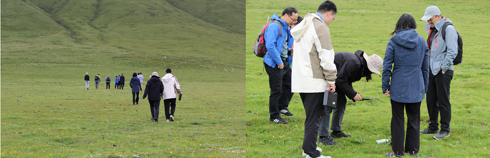 图2 科考队员在刚察多年冻土区进行植被、土壤性质调研