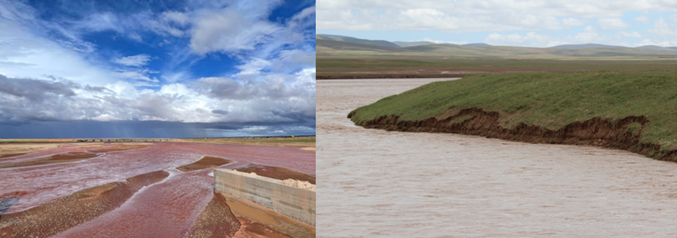 图4 左:楚玛尔河上游,右:沱沱河上游沿岸的侵蚀状况