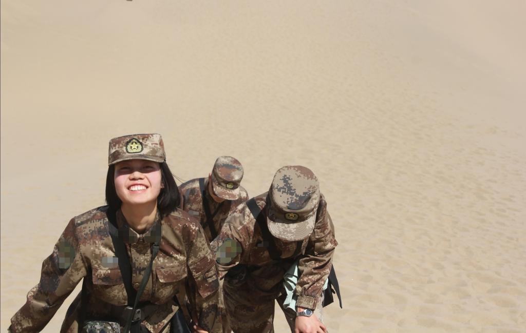 着一身戎装,展飒爽英姿。2015年9月,在完成了第一学年的学业后,李庆美满怀着对军营生活的向往和憧憬,奔赴酒泉卫星发射中心。当兵并非她一时冲动,自儿时起,她的心中就已埋下一颗参军报国的种子。当看到学校武装部发布的征集大学生新兵的海报时,心底的那个梦想重又燃起。“青春总要有点不一样!”她说。