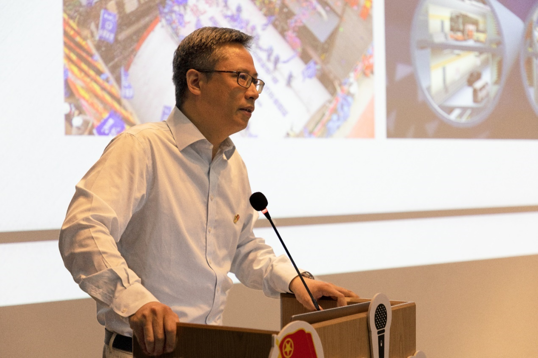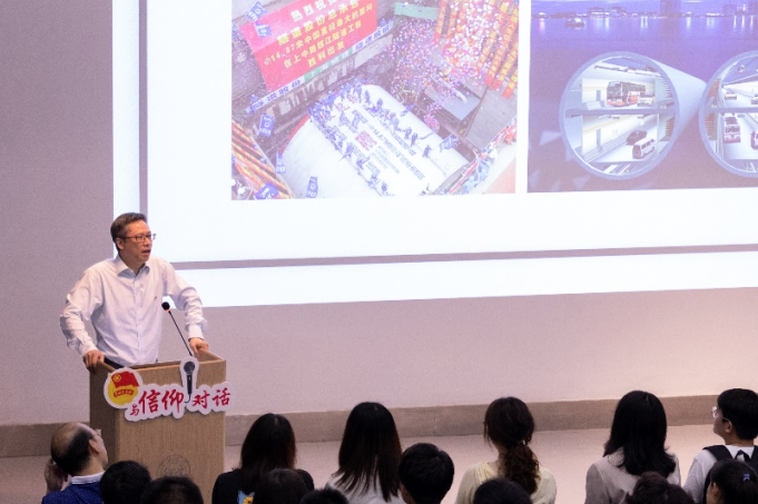 李章林老师讲到在建造虹梅南路隧道时困难众多,过程中极易引发乙烯管道爆炸。身为一名共产党员,李章林老师勇挑重担,多次在危急时刻坚守在工地上,盾构机先后6次近距离成功穿越易燃易爆的乙烯管道,保障了周边十万高校师生和居民的生命财产安全,刷新了超大直径盾构穿越下危险管道的世界纪录。