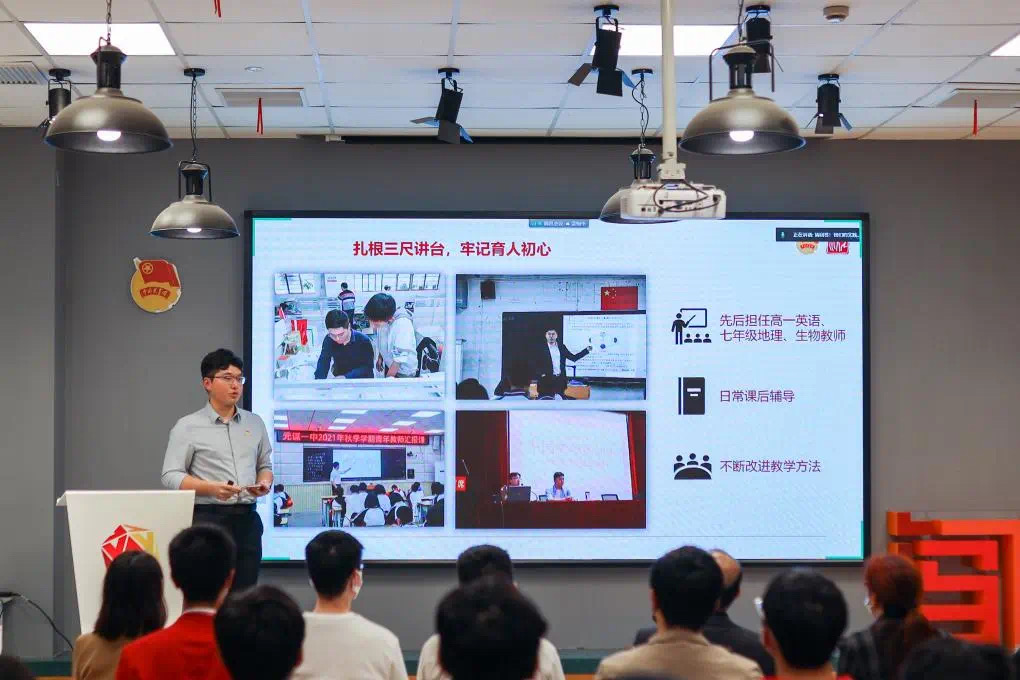 党委书记楼立志、党委副书记张珂瑜与教师代表、团员代表在线下参加活动,活动同时设置线上分会场进行直播。