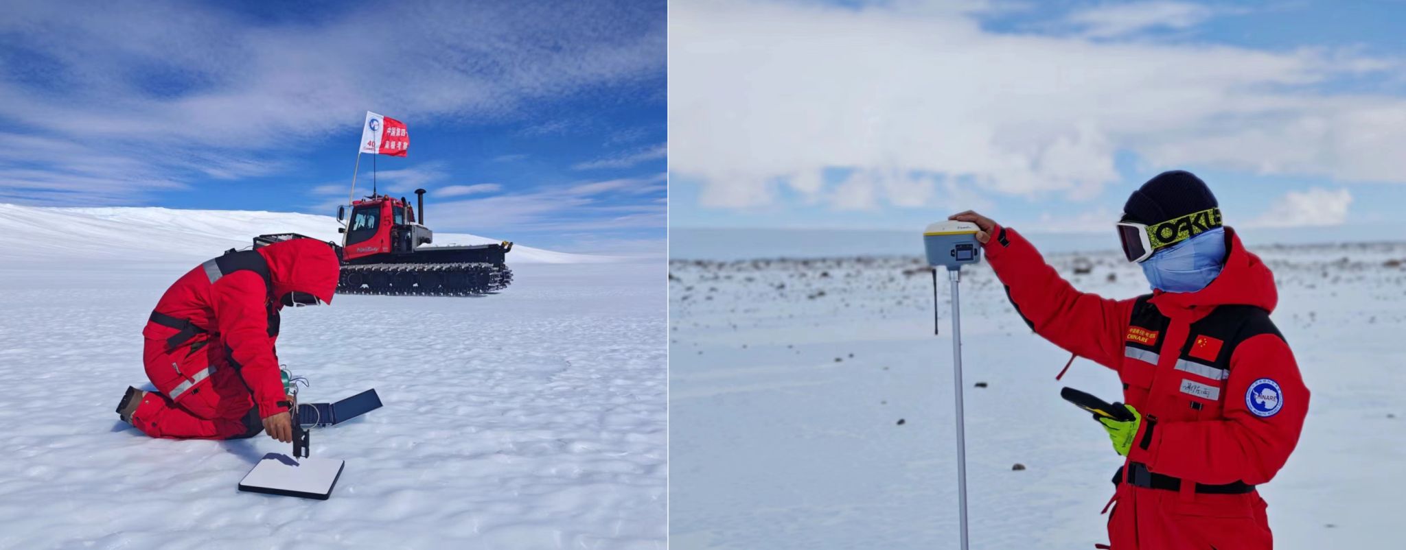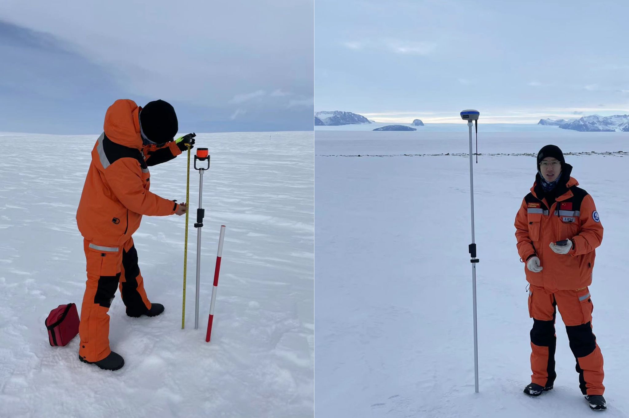 4)博士生谢陈雨参加中国第40次南极科学考察 博士生谢陈雨于2023-2024年间参加中国第40次南极科学考察,作为首位“00后”内陆队员,前往南极内陆格罗夫山地区,针对物质平衡关键参数及冰雪表面特征进行高精度测绘研究。考察期间,开展高精度无人机航空摄影测量,联合全波段地面光谱仪与光学卫星及无人机同步测定冰雪表面光谱曲线,通过地面及低空冰雷达探测冰雪浅层结构特征,基于高精度GNSS测量冰雪表面三维坐标等科学研究。基于国产高分辨率遥感卫星数据对格罗夫山地区行进路线以及麒麟冰下湖探路选线提供技术支持,为考察队安全行进做出了贡献。